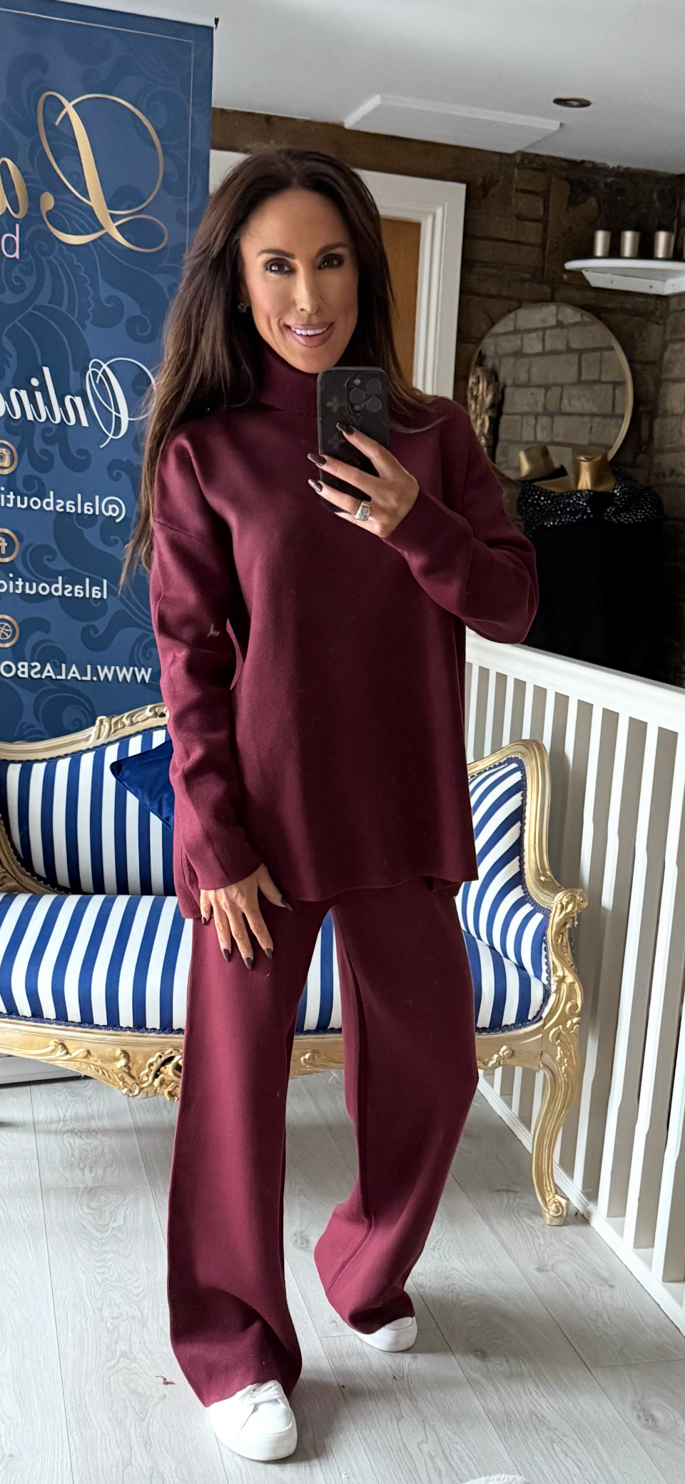 BURGUNDY SATIN DRESS & CROSSOVER JUMPER CO-ORD
