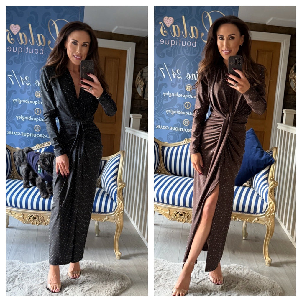 FLUTED SLEEVE CHOCOLATE JUMPER DRESS