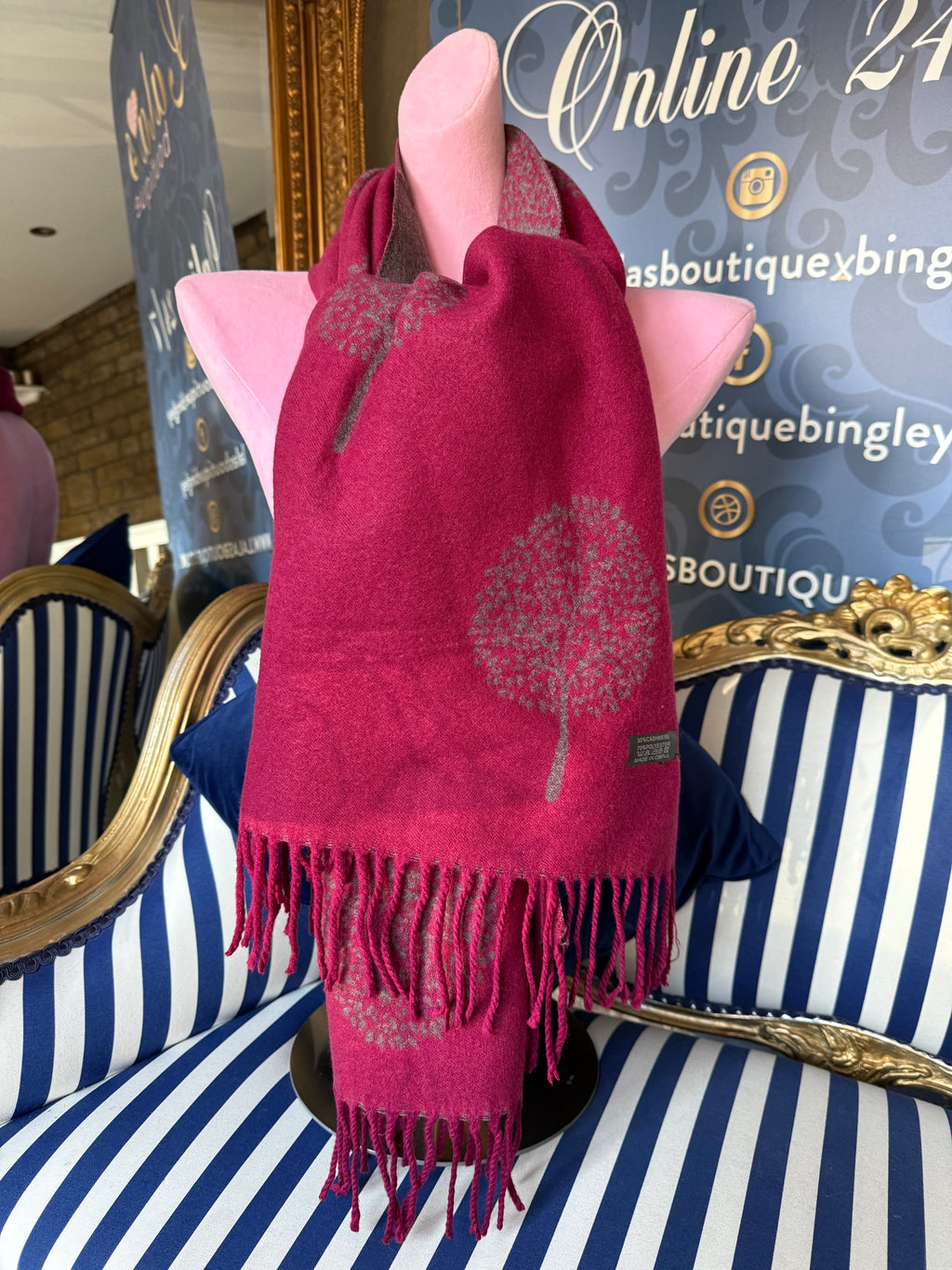 WINE & GREY MUL CASHMERE SCARF