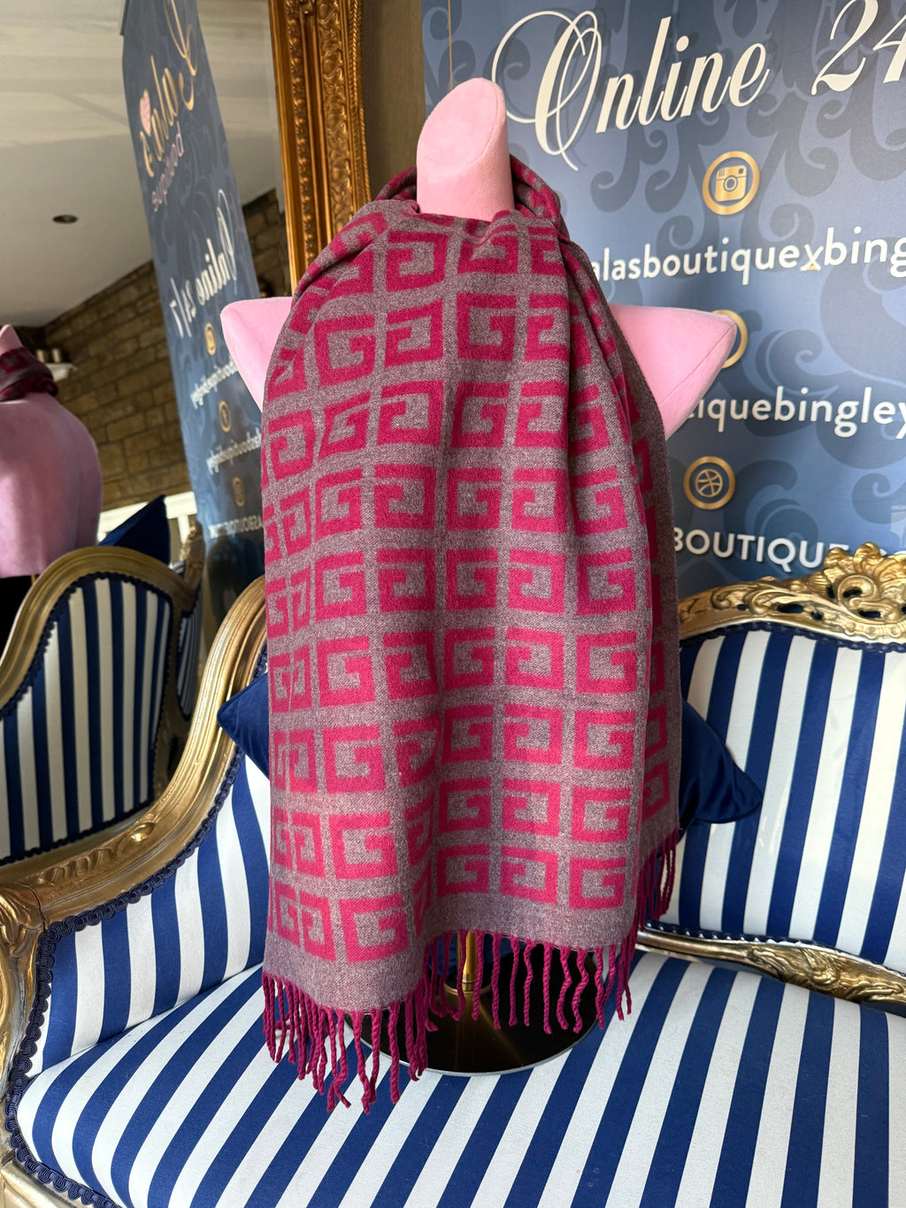 WINE & GREY GIV CASHMERE SCARF
