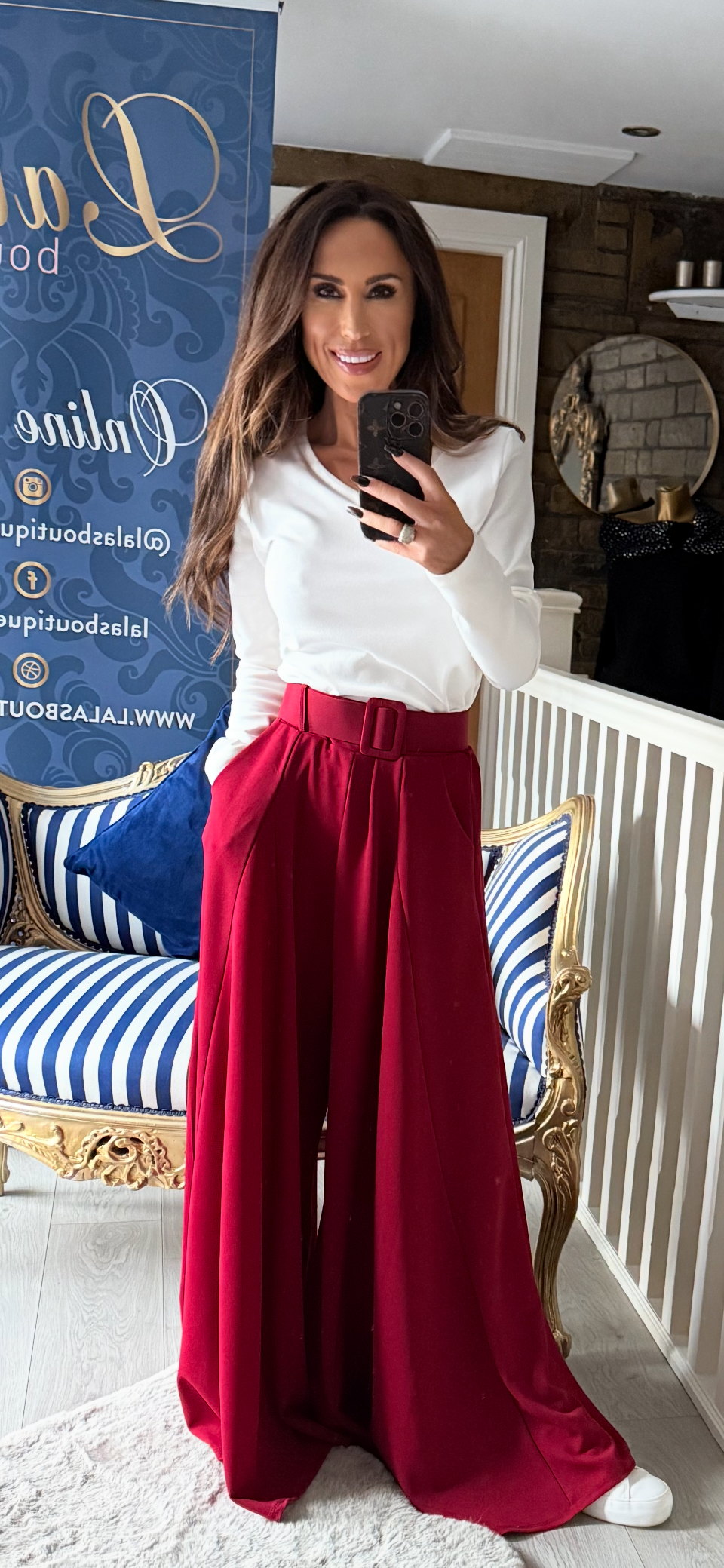 BASIC V NECK WHITE LONG SLEEVED T-SHIRT